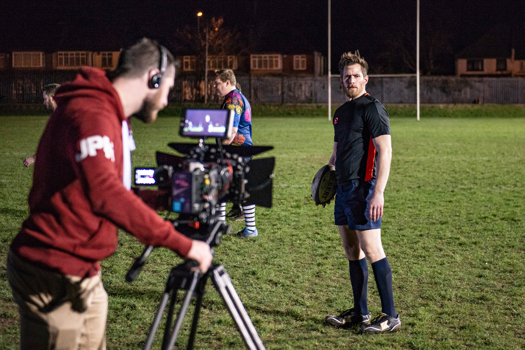 “A number of sequences take place on winter evenings on rugby training pitched under the flood lights. It was really great for helping set the mood and tone for the film. Although the film is set in South London, most of the rugby club locations we used were filmed in North London, particularly at Finchley RFC for the night training scenes.”