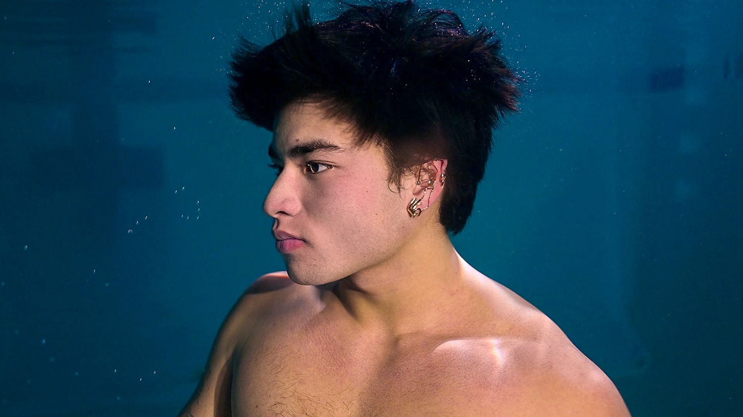 Then, I always had this vision as a kid: what is more beautiful than deaf people communicating underwater? I had this vision of it as a film for a while and was like, why don’t we introduce the jewellery through this film? We connected the two and that was a wild ride. It was hard to find a pool in New York in a pandemic. But it worked out. The script is this poem about the beauty of being deaf.