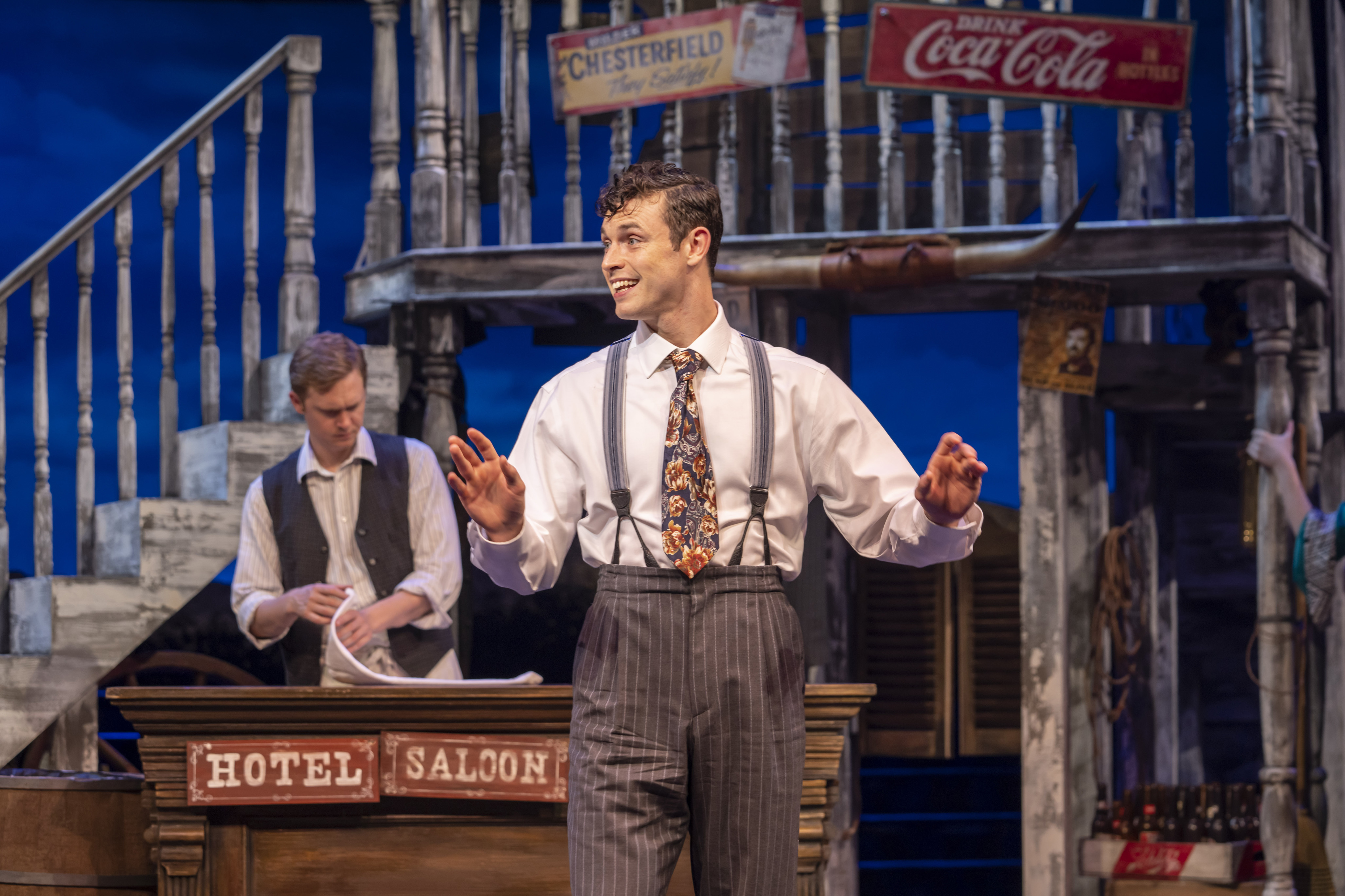 Instead, he falls for local girl Polly (Carly Anderson), the only woman in a population of just 37, and hits on a plan to impersonate showman Bela Zangler, put on a show, and save the theatre. You can just imagine the complications that ensue when the real Zangler (Tom Edden) arrives in Deadrock.
