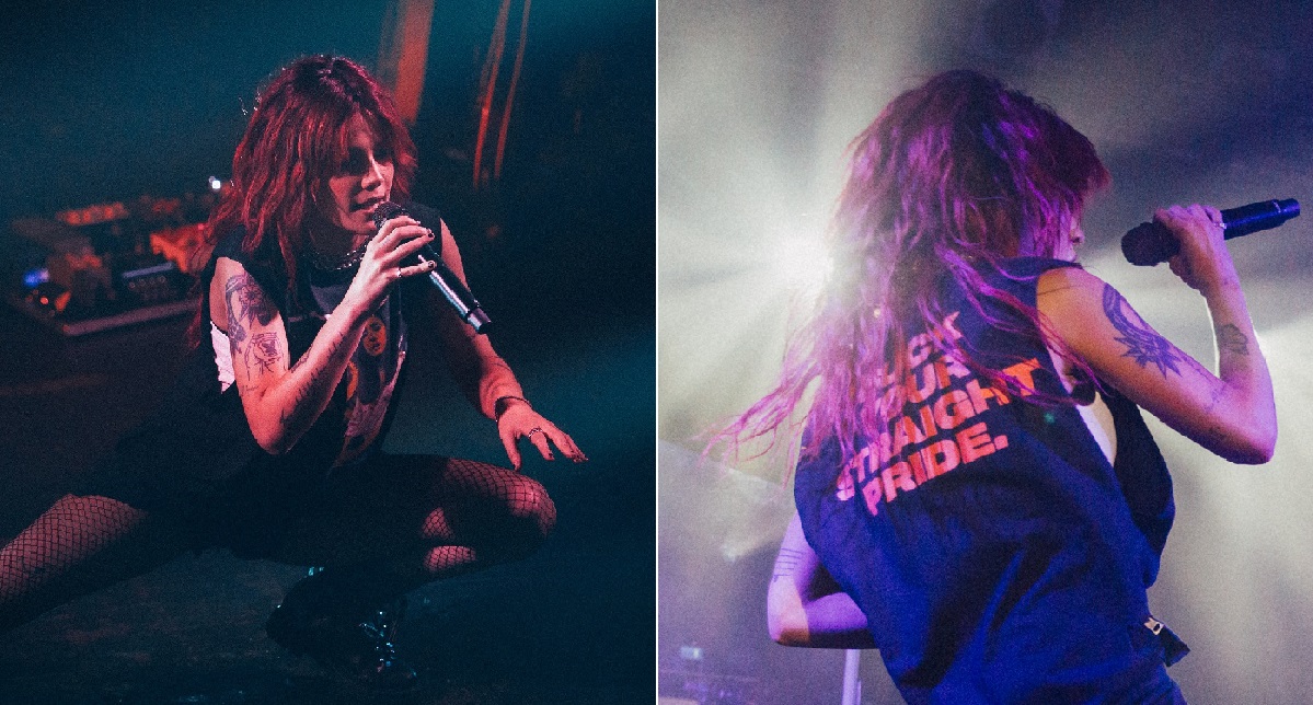 The bisexual star, 24, took to the stage at Camden’s Electric Ballroom sporting a t-shirt bearing the horrifying picture of a lesbian couple who were brutally attacked on a London bus last month, before deliver an impassioned speech about the importance of Pride.