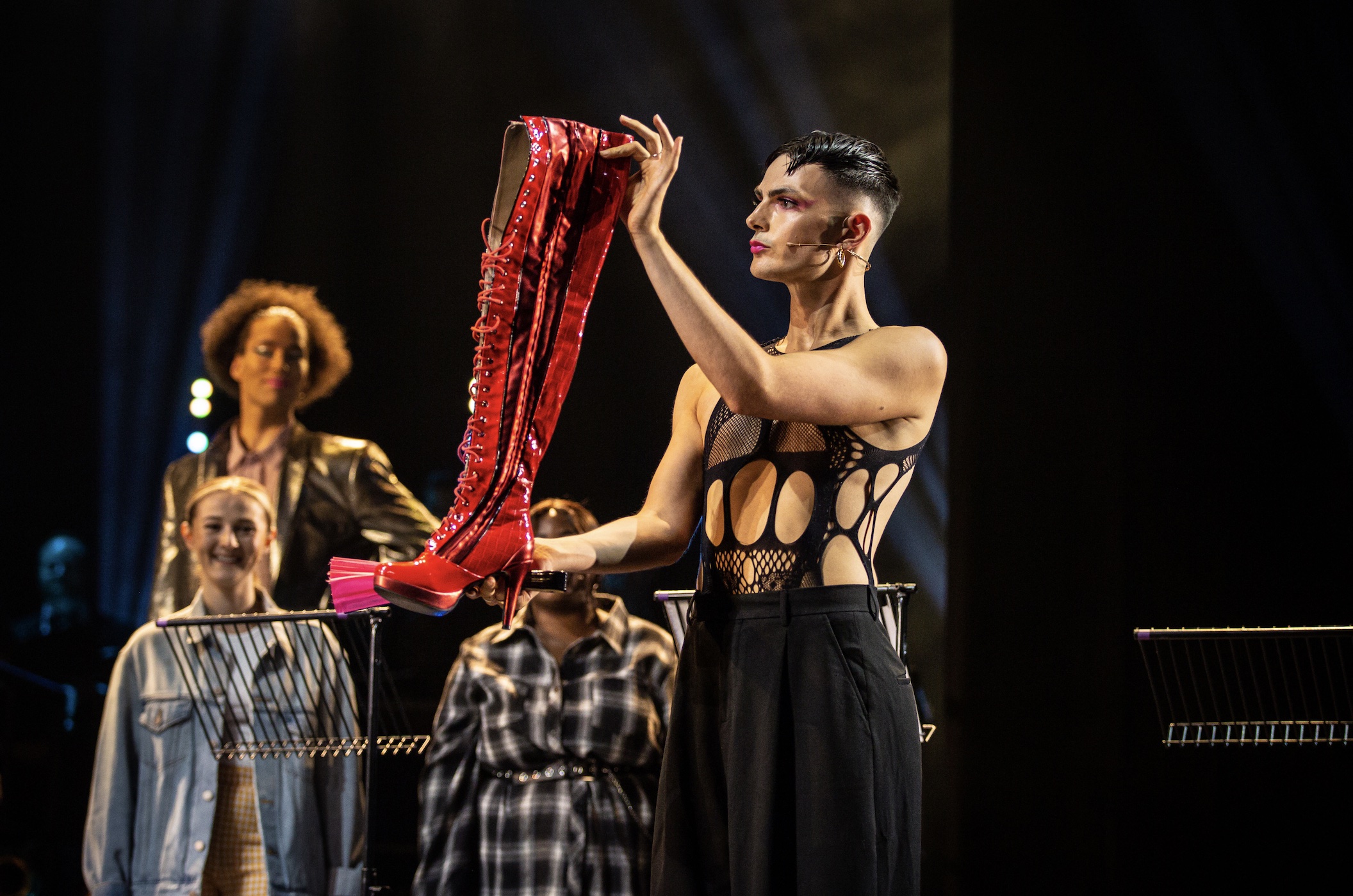A two-night-only affair, Kinky Boots The Musical In Concert does exactly what it says on the tin. Following on from a similar staging of Chess earlier this month, it’s a stripped-back production with no sets, minimal costume changes, and only a few props (including, of course, a pair of fire engine red boots).