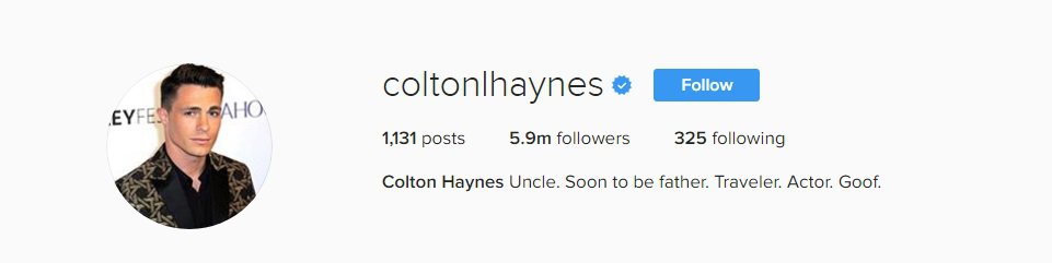 His bio now reads: “Uncle. Soon to be father. Traveler. Actor. Goof.”
