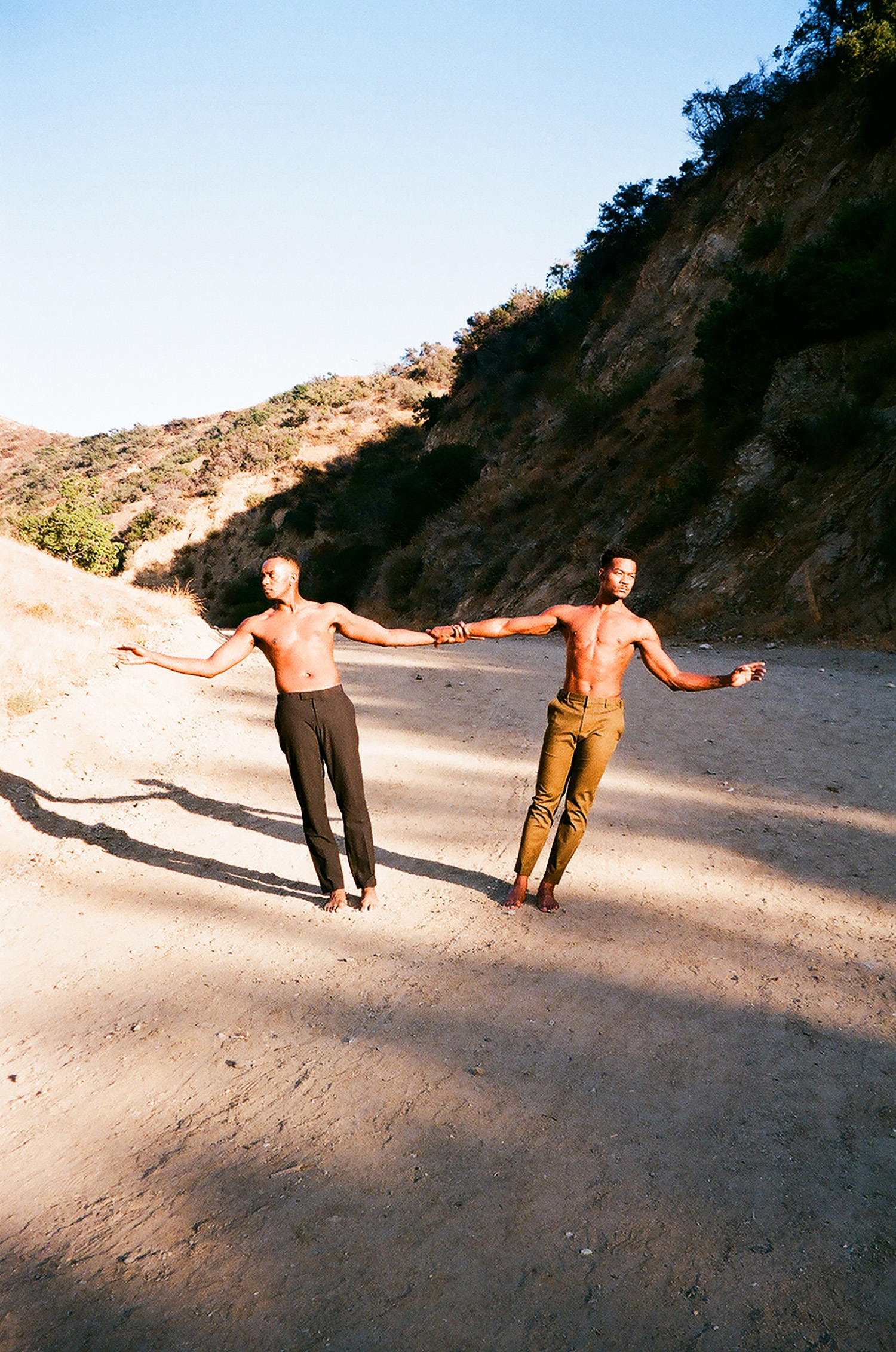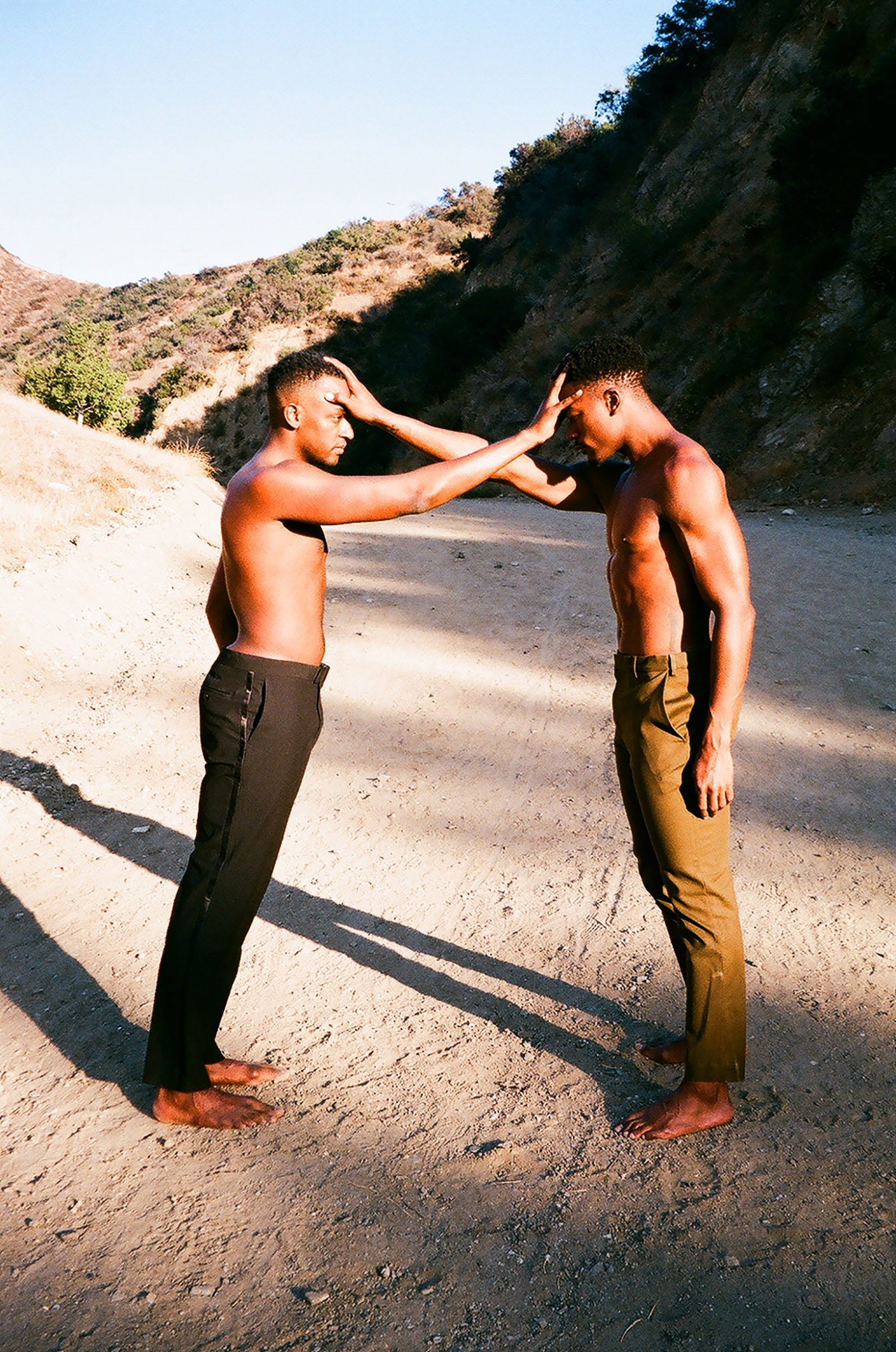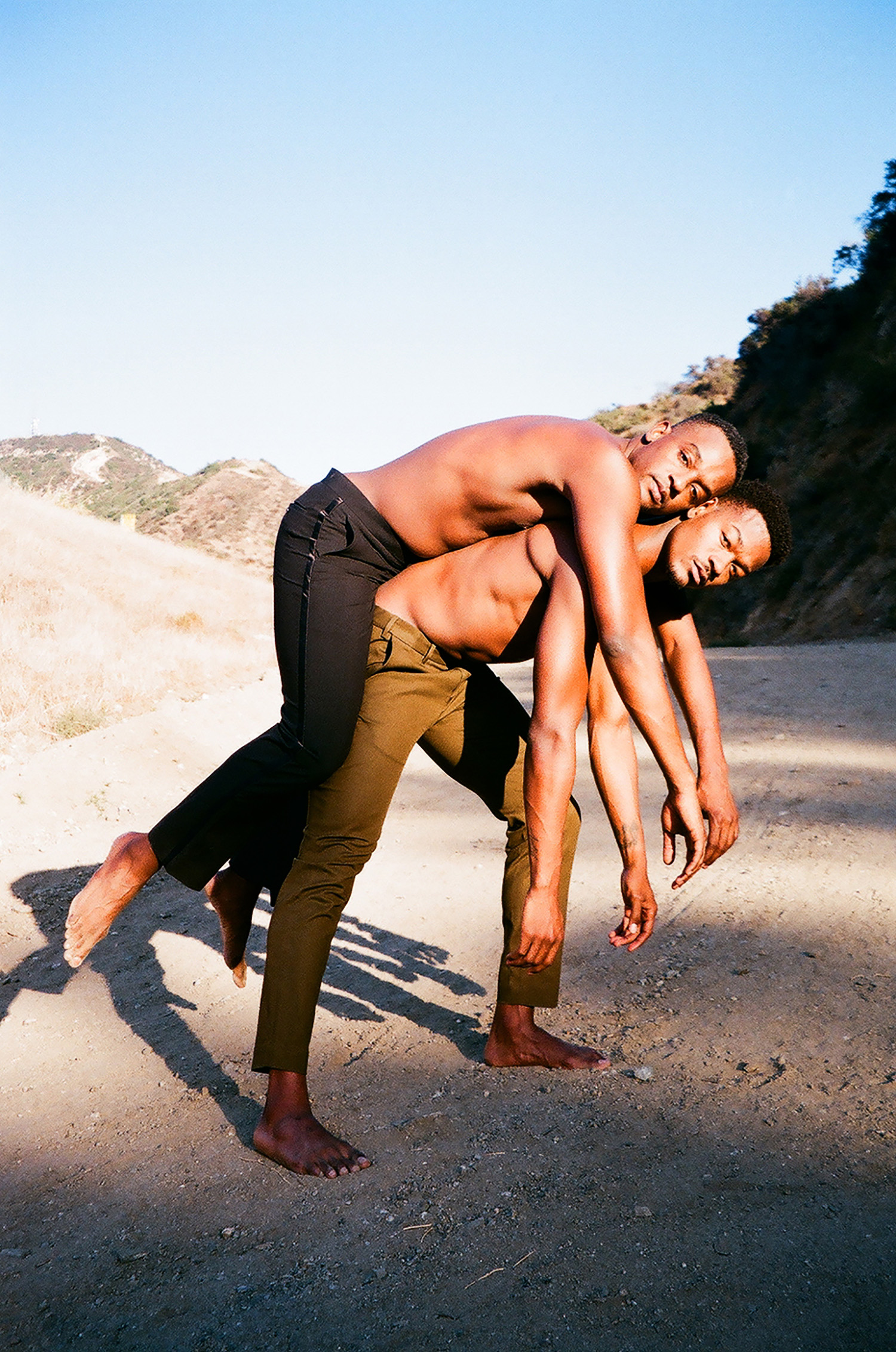 Another photographic entry to this year’s exhibition is Jamie’s triptych Together. Jamie is a London-based artist whose work is primarily influenced by personal experience with addiction and mental health. Shot in Los Angeles, this piece portrays friends and professional dancers David and Jamal. Jamie asked them to perform a ss series of movements that told the story of their support for each other, and the strength of their relationship. Jamie says: