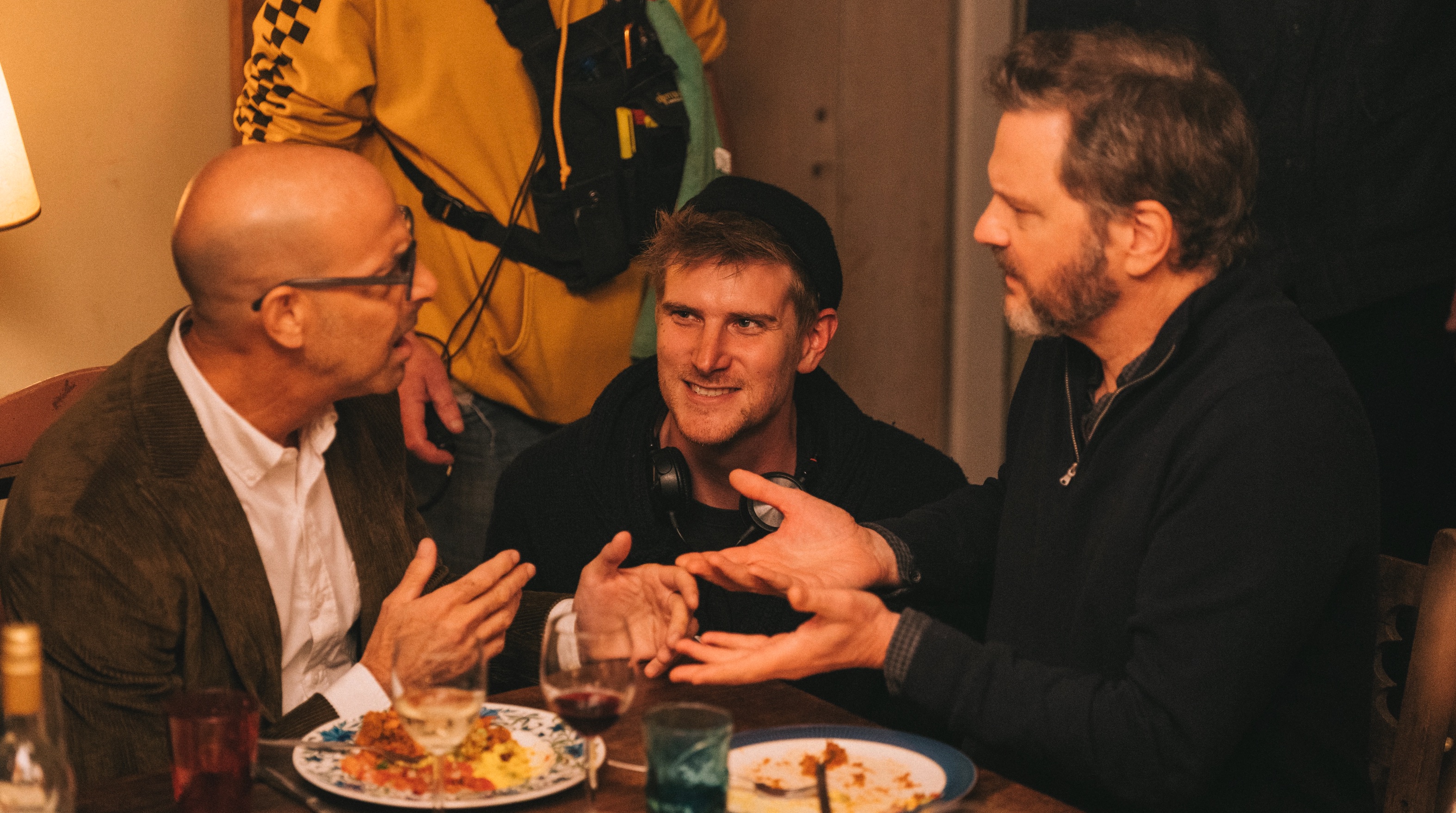 Stanley Tucci, director Harry Macqueen and Colin Firth on the set of Supernova