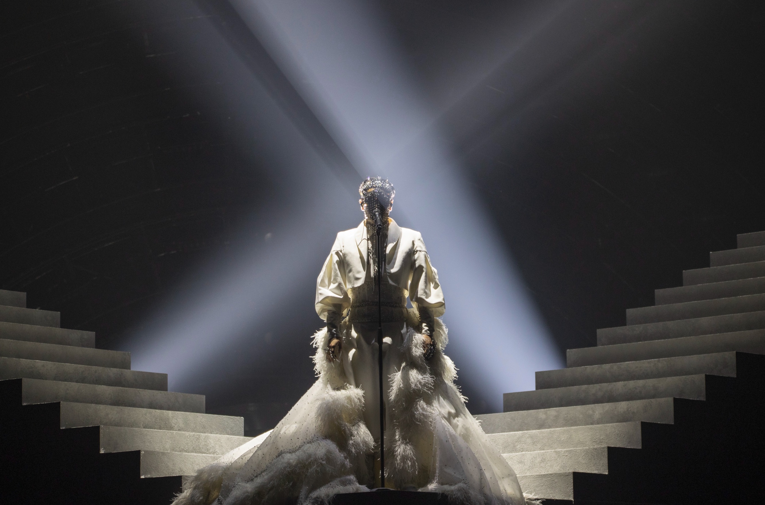 In the Eurovision performance, the Sydney-born singer will wear a gold-plated mask decorated with Swarovski crystals. Towards the end of the song, Riley removes the mask in an act that he describes as being in control of how happy you feel about your own appearance.
