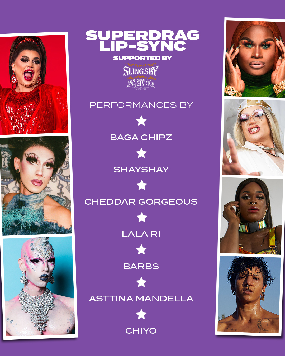 Superdrag Lip-sync, supported by Slingsby, features RuPaul’s Drag Race UK season one superstar Baga Chipz, season two sister Asttina Mandella, Drag Race US legend La La Ri, the high priestess of drag Cheddar Gorgeous, cabaret star ShayShay, agent provocateur Chiyo and London’s self-proclaimed ‘drag slag’, Barbs. And you’ll need a stiff one (gin or vodka) to hand…