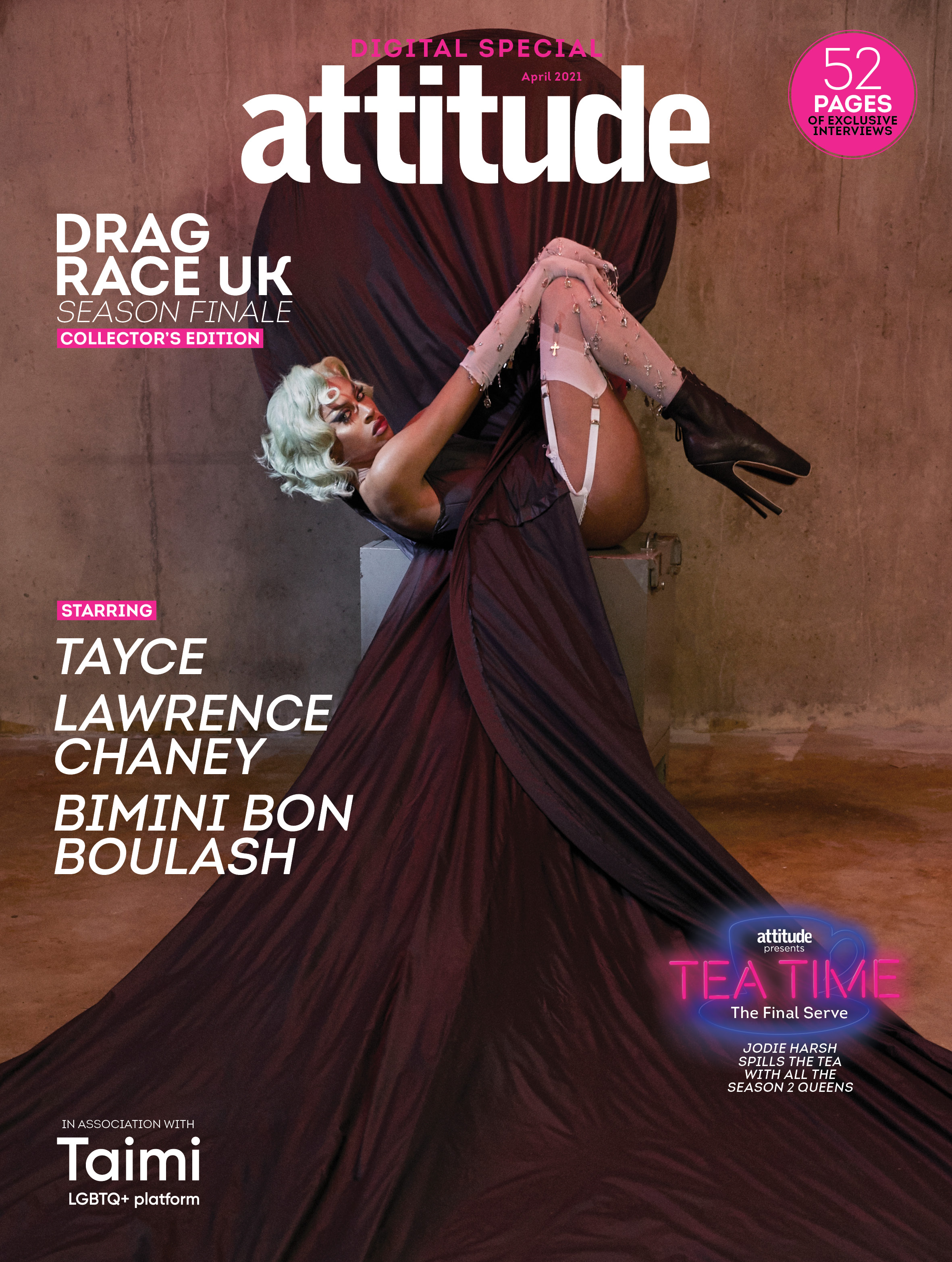 As well as marking Lawrence, Bimini and Tayce’s first editorial cover shoots to take place since the final, the Attitude Tea Time digital special in association with TAIMI also gives you the chance to catch up with all the queens from Drag Race UK season two@ Ellie Diamond, A’Whora, Sister Sister, Tia Kofi, Veronica Green, Joe Black, Asttina Mandella and Cherry Valentine.
