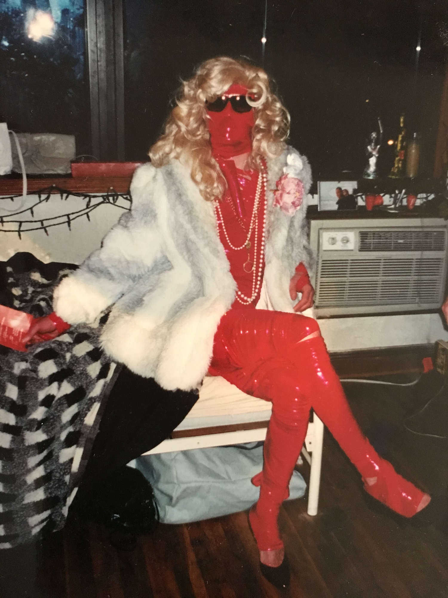 I’m in Lavinia’s apartment. A hot, cramped tenement — typical East Village — stuff ed with wigs, boas and drag memorabilia. Lavinia is an ephemeral, charming, wispy queen from Hackney and a new friend I met in the Boiler Room, a dark, smoky gay bar with signs reading “No Dancing, by order of the Mayor, Giuliani”.