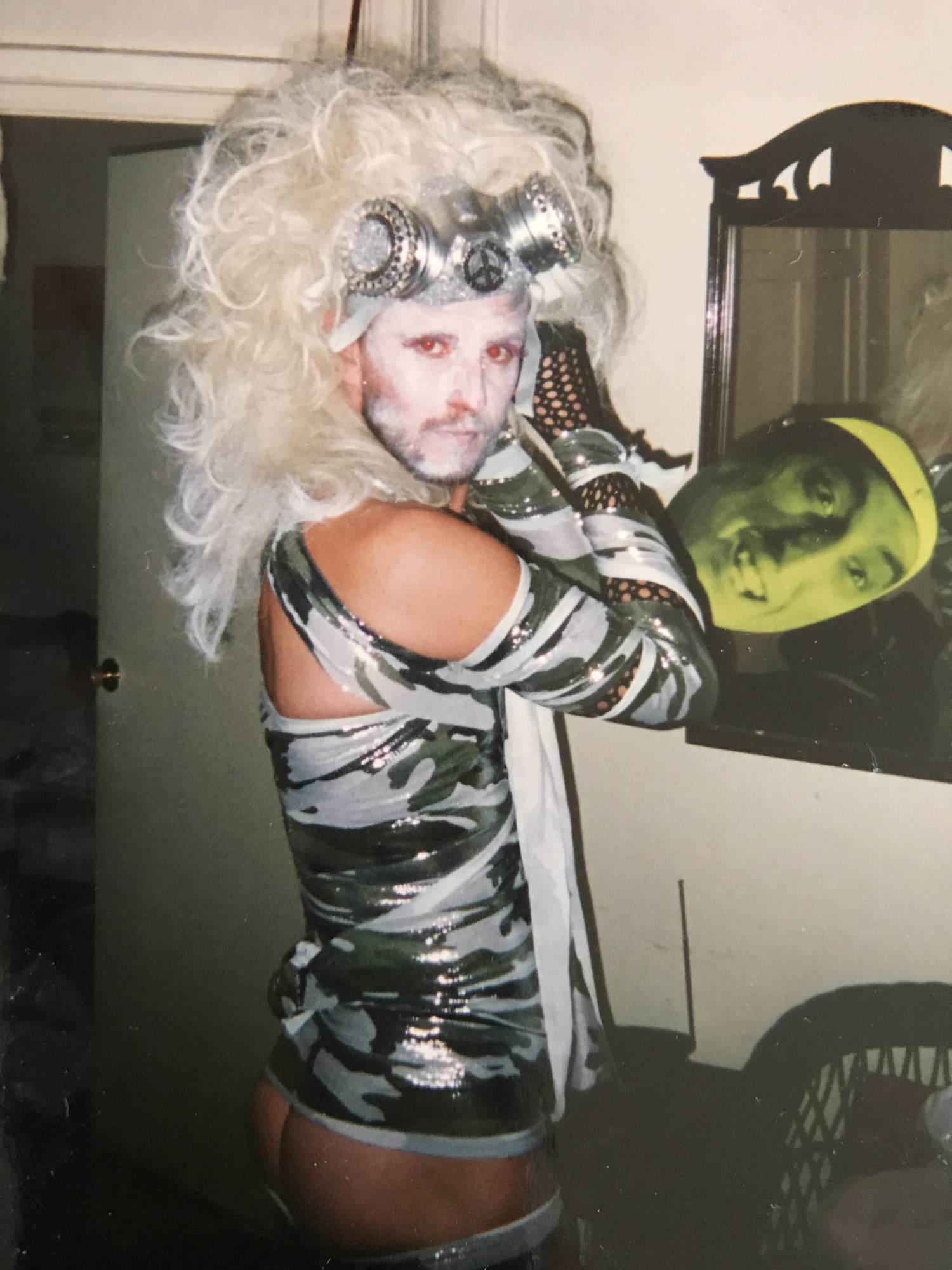 Then a dance troupe perform a full Martha Graham repertoire and I’m pulled on to the bar by a guy in military drag whose hot lips devour my mouth, smearing our faces with cheap lipstick. My dress is hitched up and he is on my crotch (or maybe I was first to go down on him) and the drag queen on stage is loving our impromptu sex show as we tumble off the bar into the bottle bins.