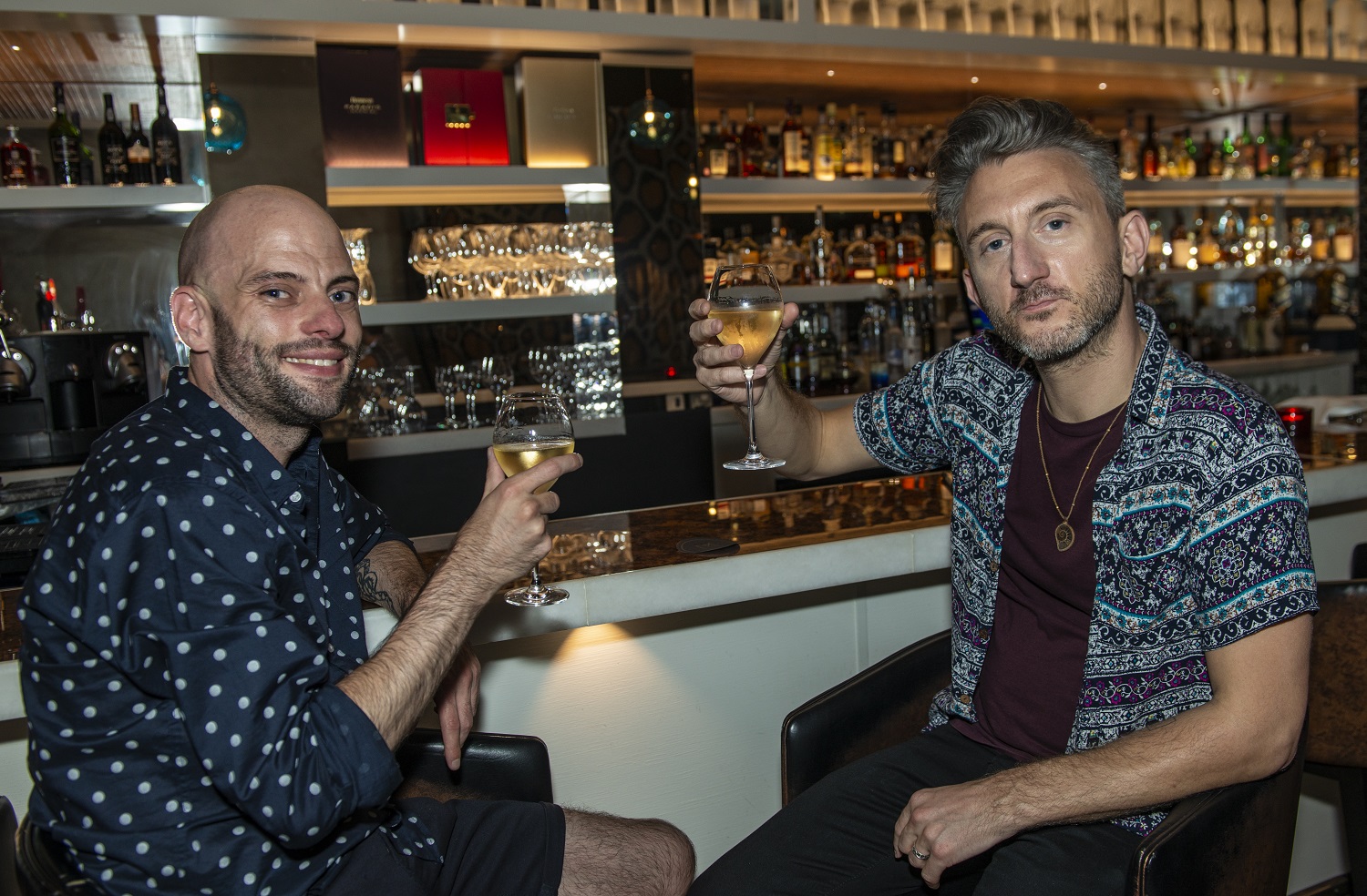 C: I was waiting at the bar — I arrived about 25 minutes early to cool off, it was 28C outside — and just as my champagne was poured for me, I turned around and he was in front of me. I was impressed he had arrived a little early as well.