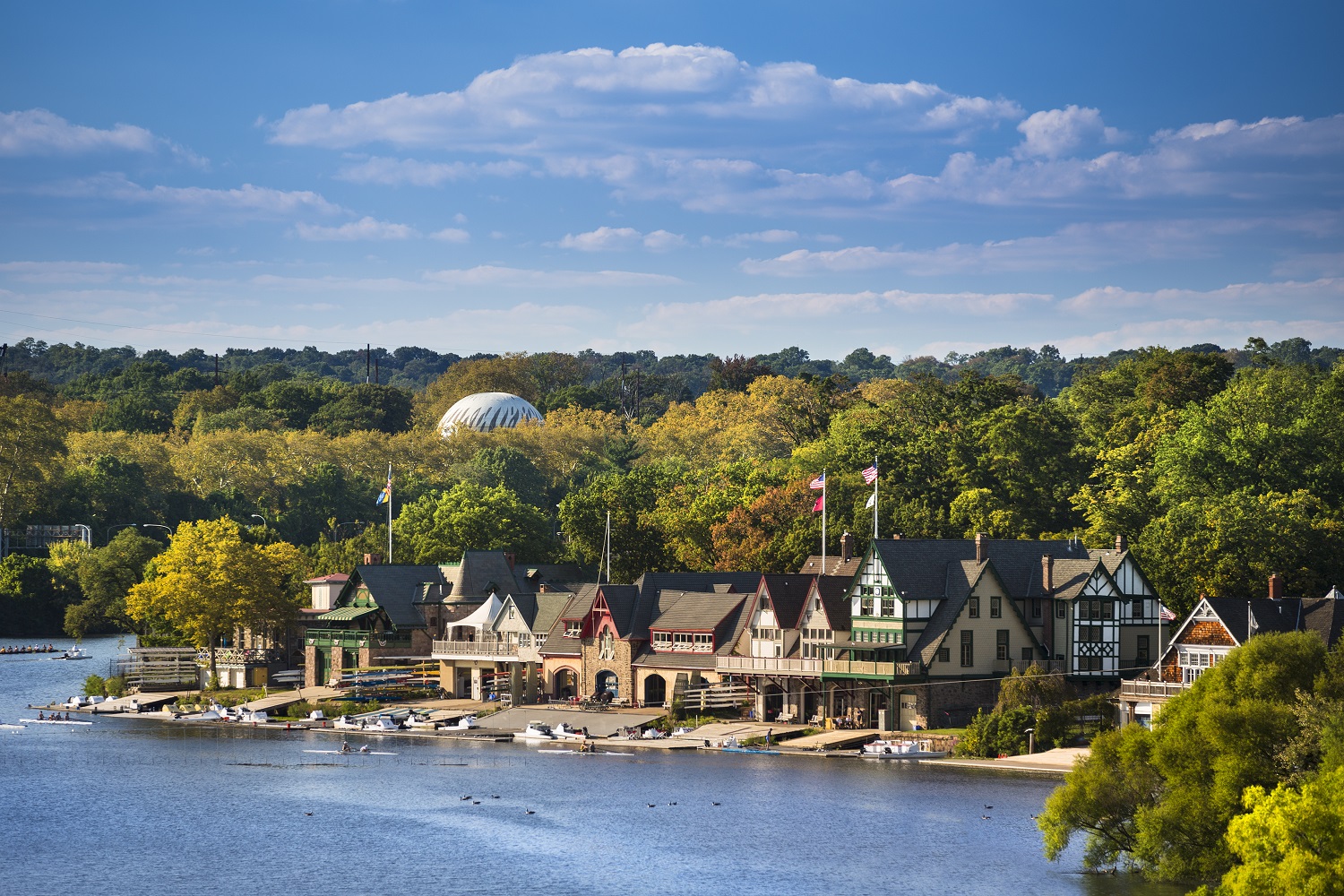 It’s home to Boathouse Row: 10 charming clubhouses set on the serene banks of the river where competitive rowers train.