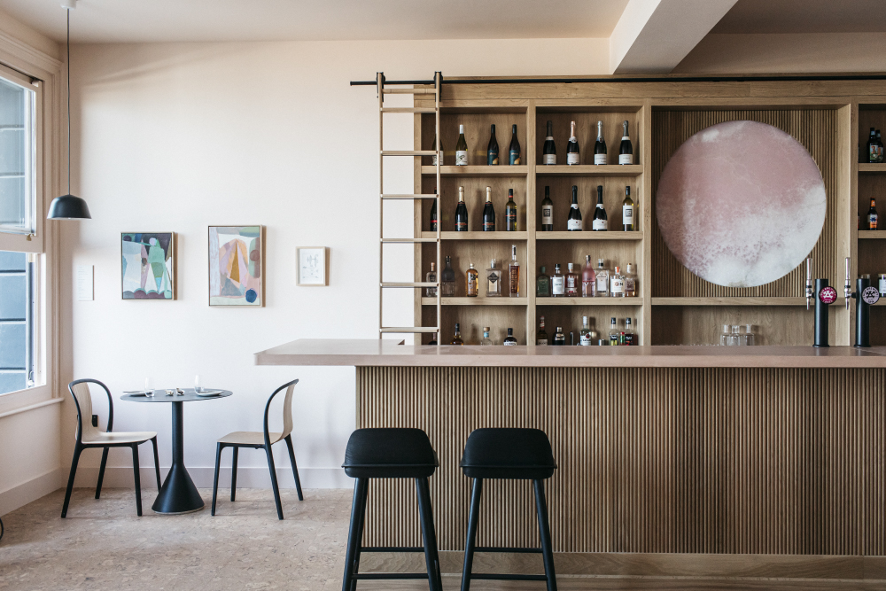 Personally, I love the Addams Family exterior, though the interior is a complete juxtaposition, with mid-century furniture, pale wood and pink pastel accents giving the place a serene and airy atmosphere.