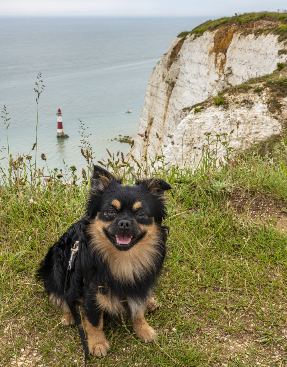 As I attempt to take photos of the Belle Tout Lighthouse off the coast – camera in one hand and the lead of our frisky dog in the other – my stomach fills with butterflies as I inch closer to the cliff’s edge. The further east we walk, the more alluring the scenery, ending at the glorious Seven Sisters cliffs.