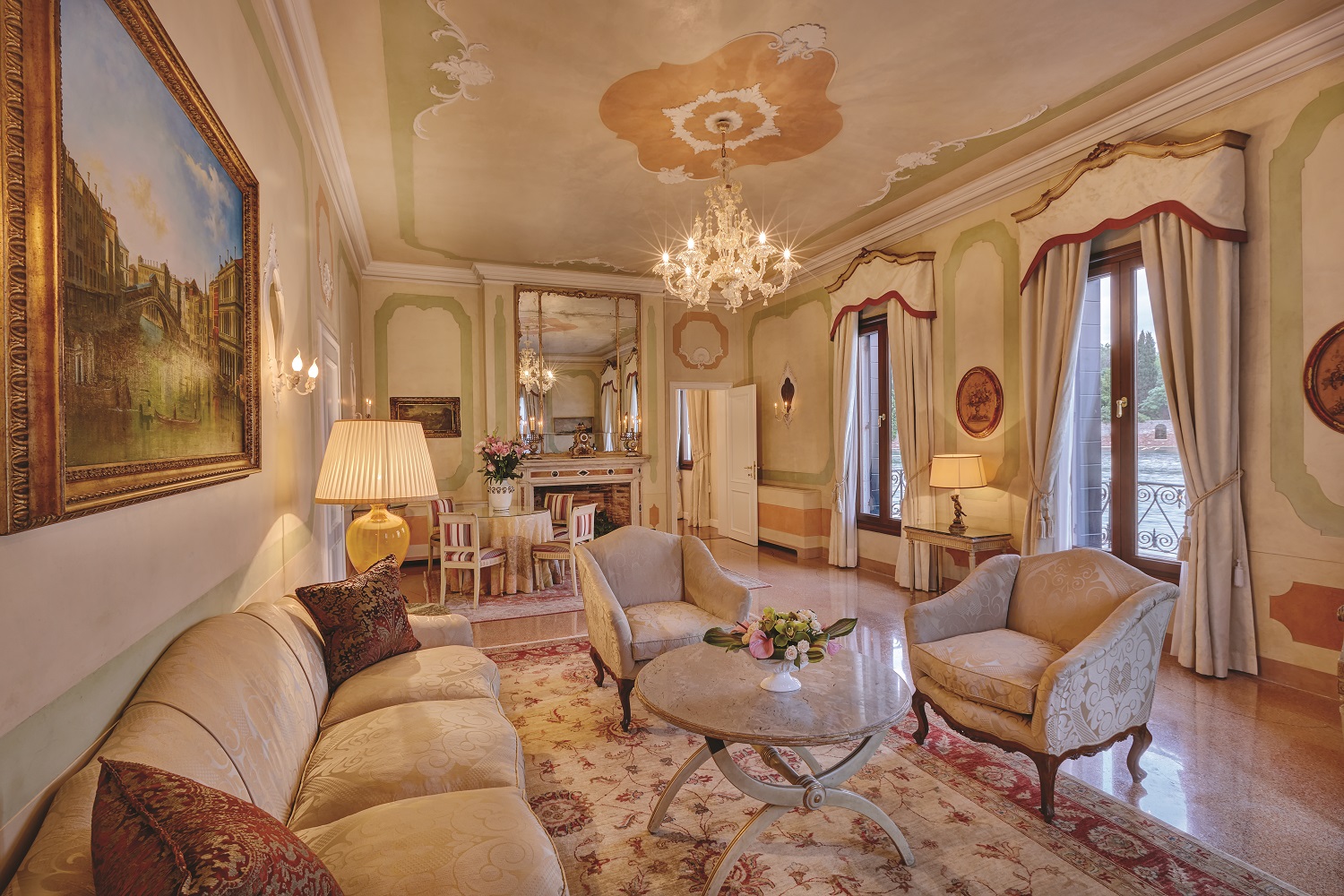 I wasn’t disappointed. Set on the island of Giudecca, just across the water from the famed St Mark’s Square, this pink-painted edifice comes right to the water’s edge where jetty and grand entrance meet.