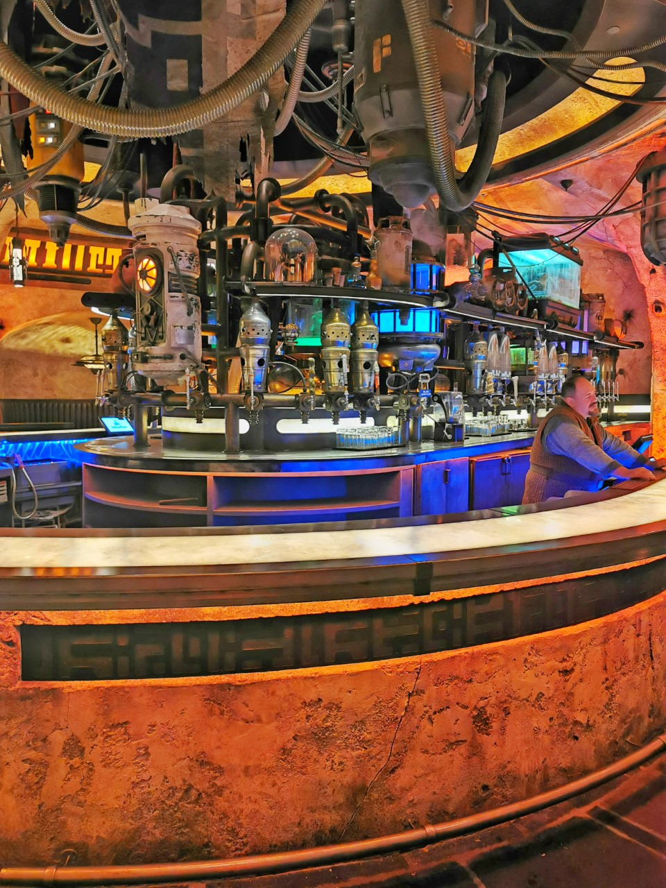 After the ride, we all sat down in Oga’s Cantina, which is similar to the one in the first Star Wars film, though instead of an alien band playing instruments, music is provided by a RX-24 droid manning the DJ both.