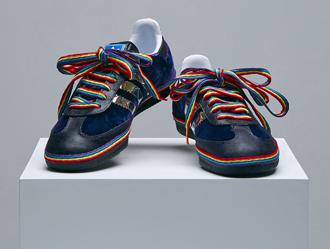 The customised adidas Sambas will be placed on display and open to the public at a free exhibition at the HENI Gallery in Soho for London Pride Week from July 4 to 10. The exhibition will feature each of the customised adidas Sambas alongside projections from the contributors explaining their involvement and individual concepts for the campaign.