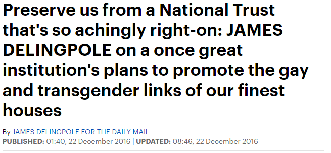 The Daily Mail has blasted the National Trust’s plans to celebrate its LGBT+ history next year, describing the leadership team behind the plans as “tiresomely PC.”
