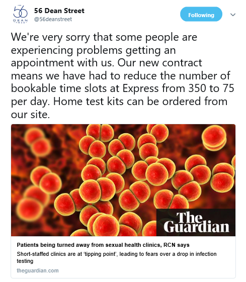 At the time, it wrote: “Sexual health services across London are under increasing pressure.