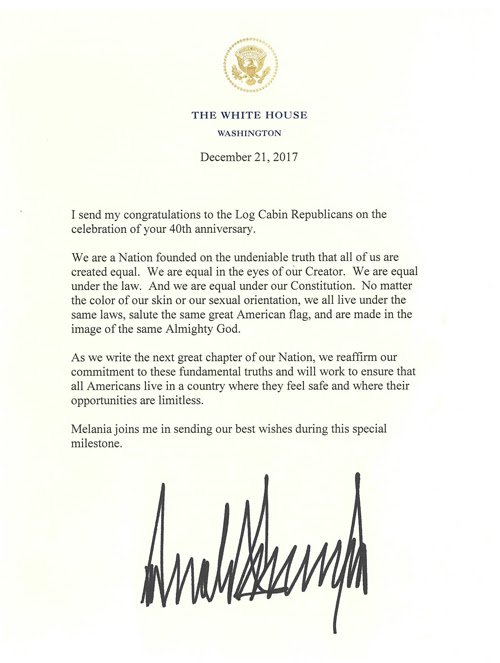 The US President sent the letter to the Log Cabin Republicans, which happens to be the nation’s oldest and largest group of LGBT conservatives, in celebration of its 40th anniversary.