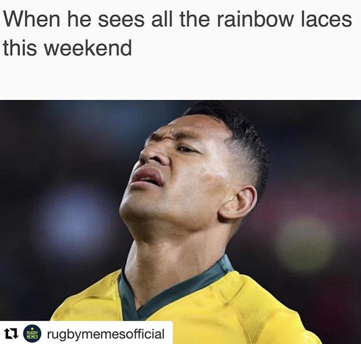 Last November, the Sussex-born athlete shared a meme on Instagram showing a despondent-looking Folau next to the caption ‘When he sees all the rainbow laces this weekend’ – a reference to the campaign which has seen sports stars don Pride-patterned laces during matches to show solidarity with LGBTQ people in sport.