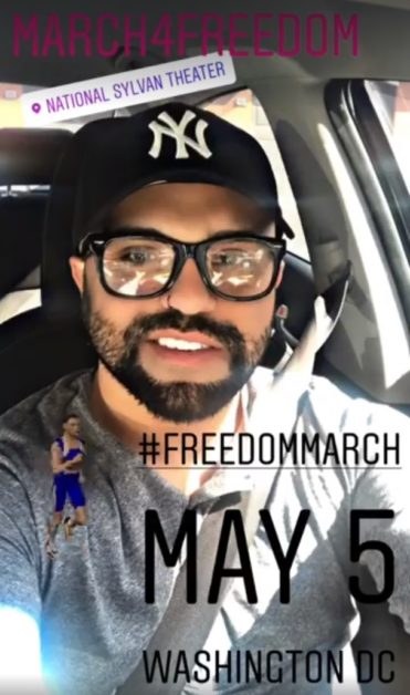 He then promoted the event again on his other social media accounts and said he is marching because he is “free”.