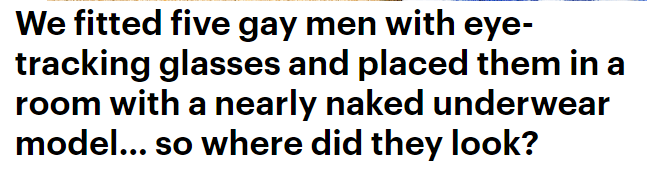Despite this, the article seemed to suggest that researchers wanted to know if the gay men could “maintain eye contact” in front of the almost-naked model.
