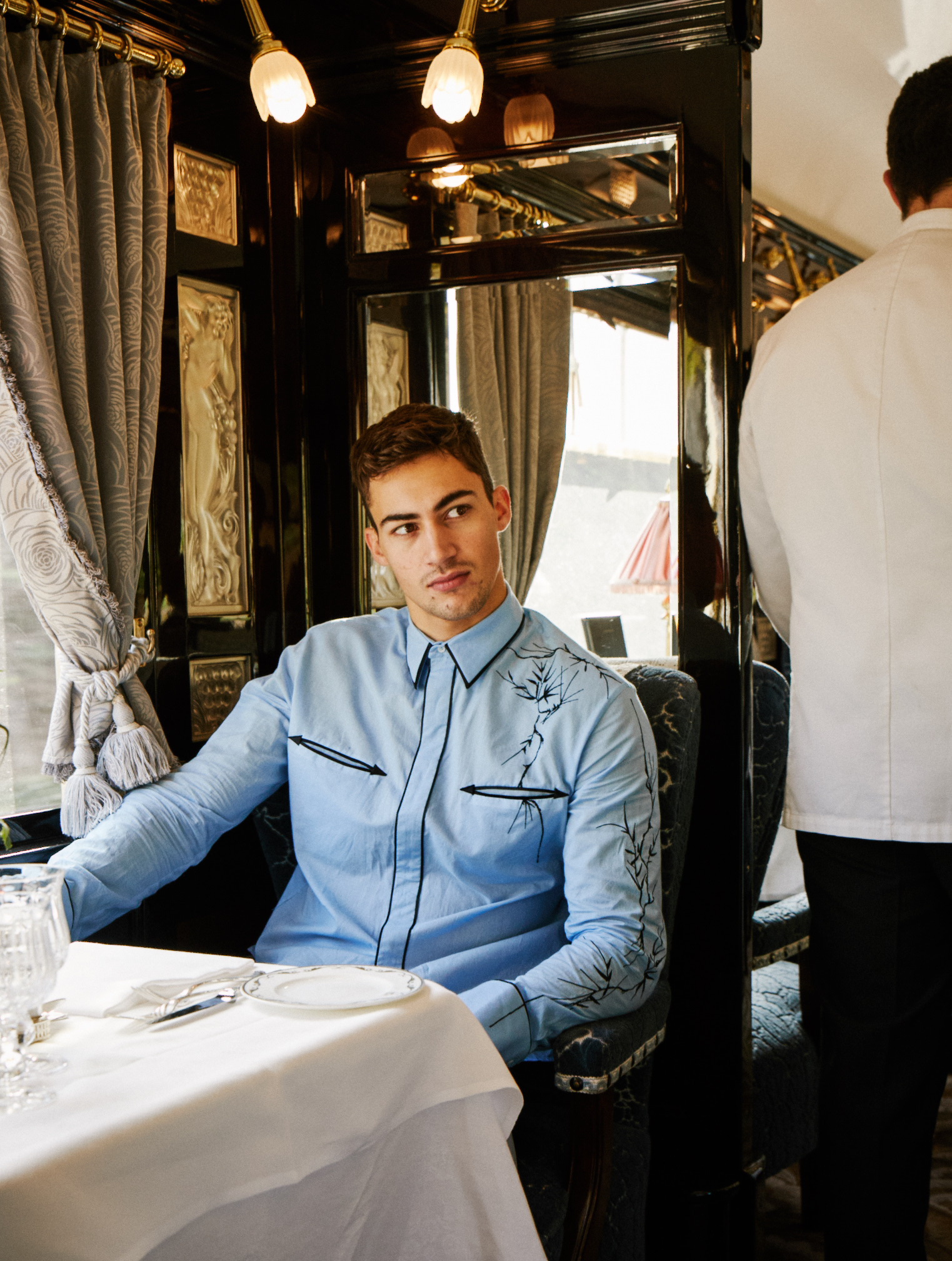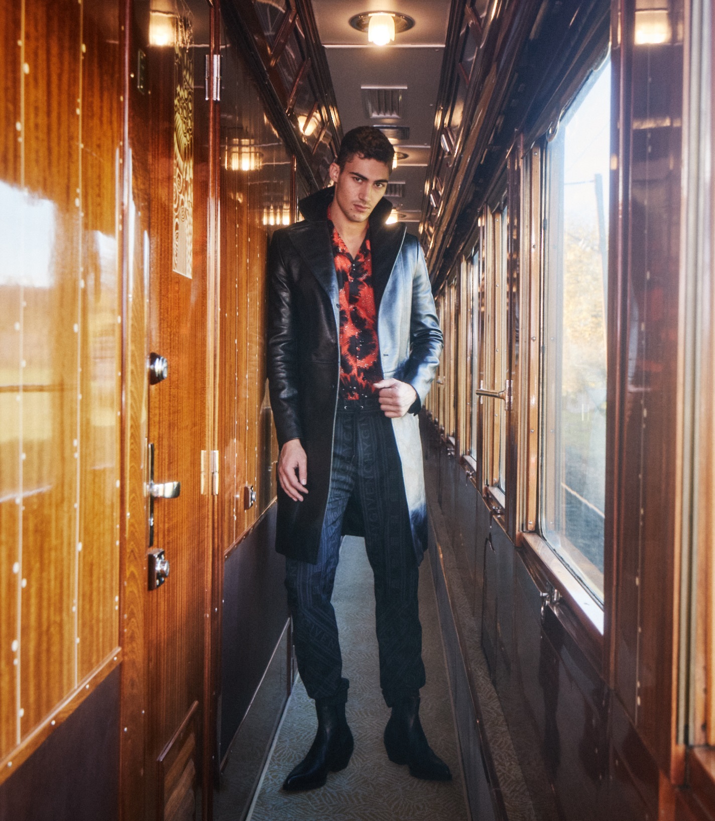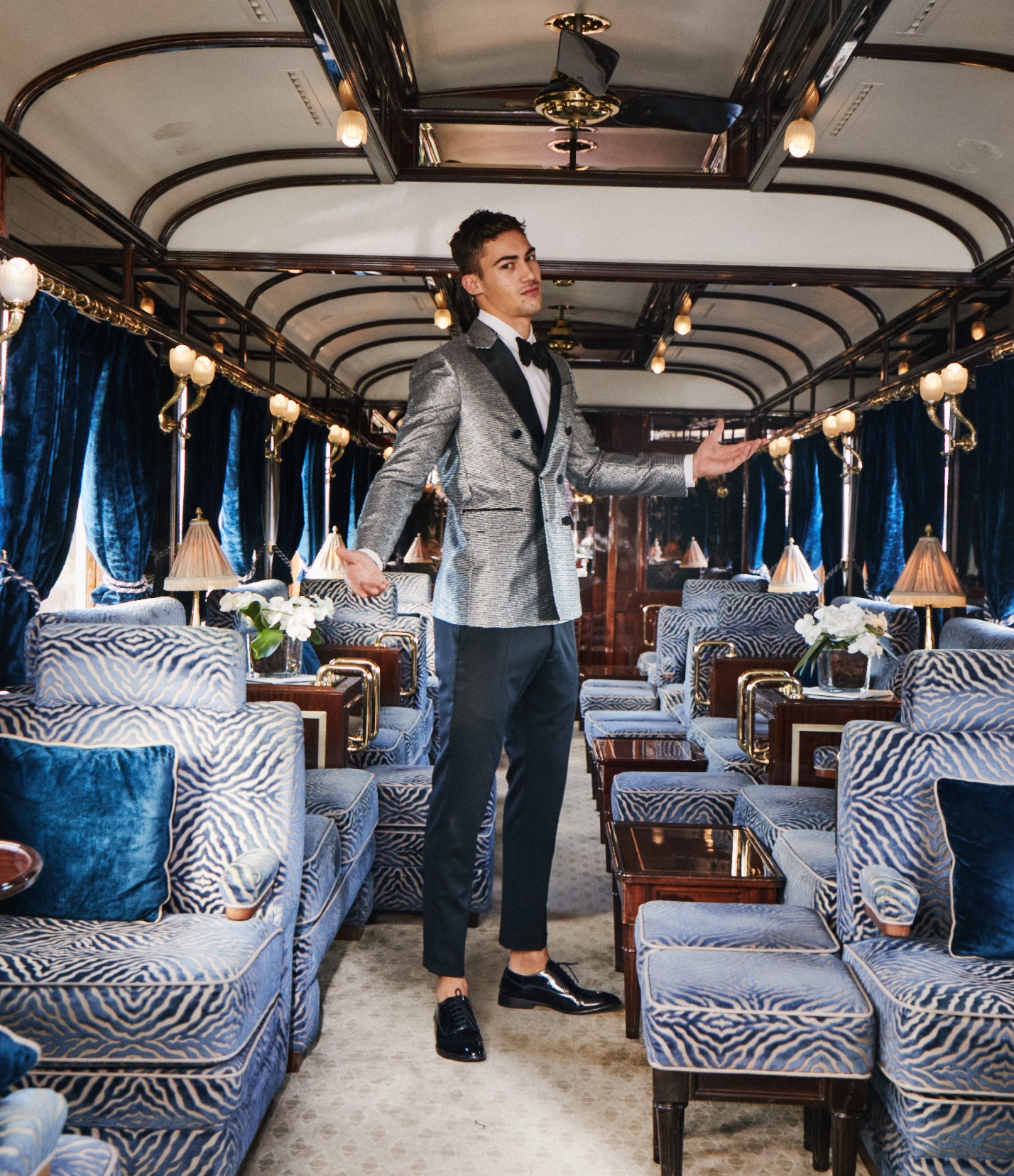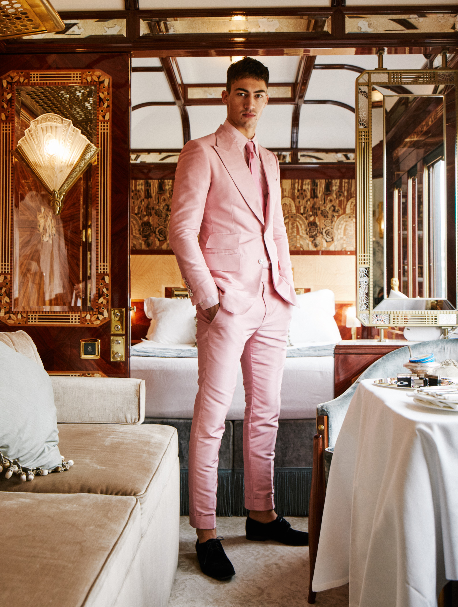 Along with Next Models’ Alessio Pozzi, we boarded the Venice Simplon-Orient-Express for an exclusive shoot earlier this year – and while it wasn’t murder on the Orient Express, there were killer looks aplenty as Alessio showed off the latest in luxury style in the historic surrounds of the service’s Pullman carriages and suites.