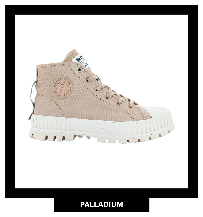 As part of Palladium’s Ticket to Earth series the iconic Pallashock style has had an eco re-vamp, now made completely in 100% organic cotton and cork and recycled materials for the outsole and lining.