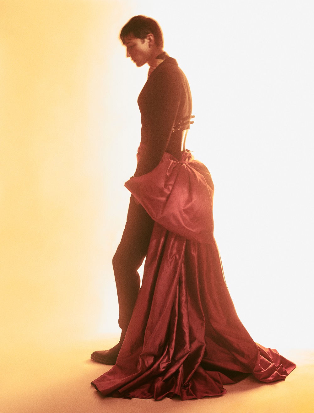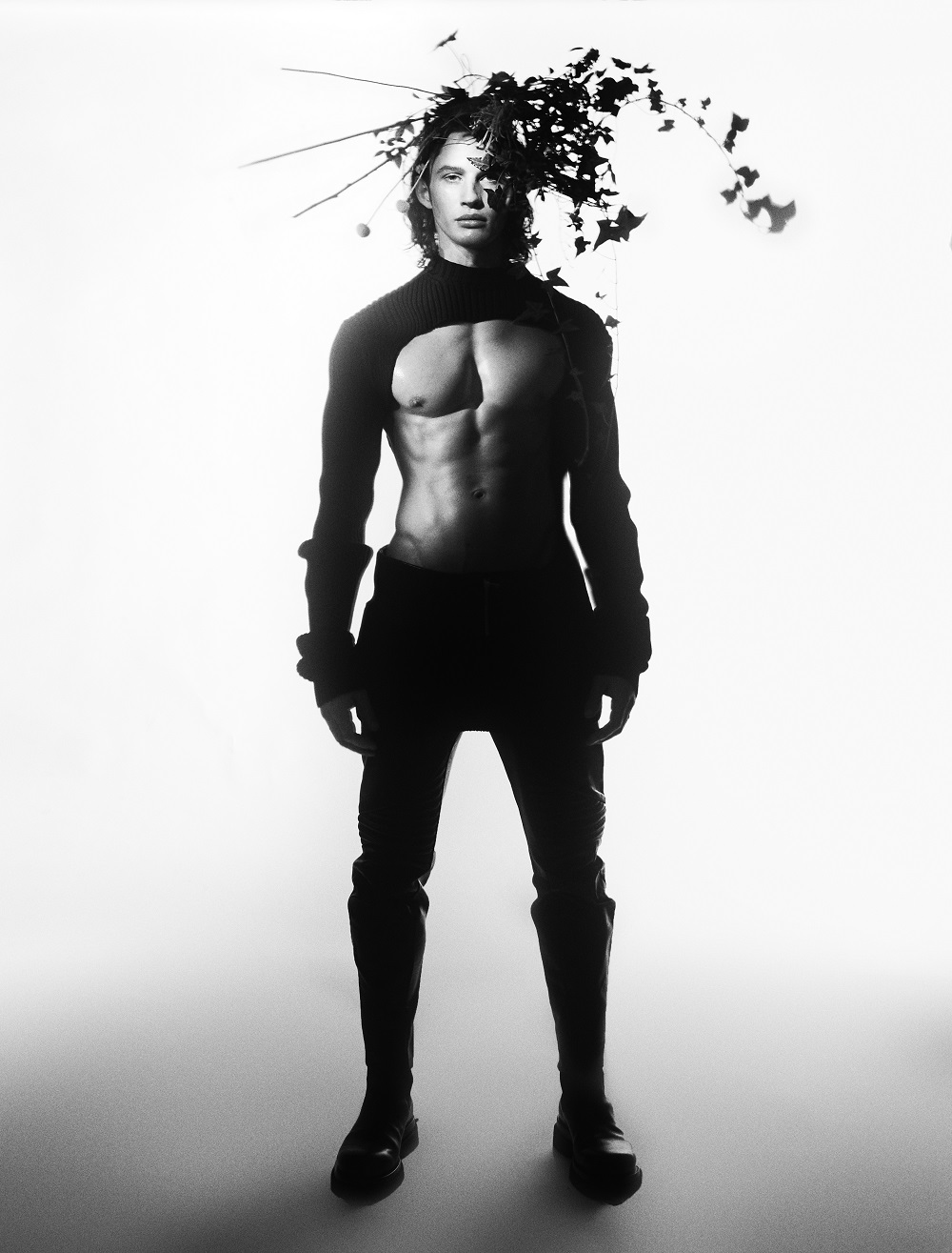 Liam wears top, trousers and boots by Bottega Veneta (Photography: Olivier Yoan)