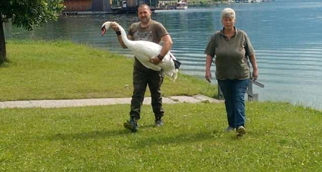 The swans treated the colourful plastic cups as their own eggs
