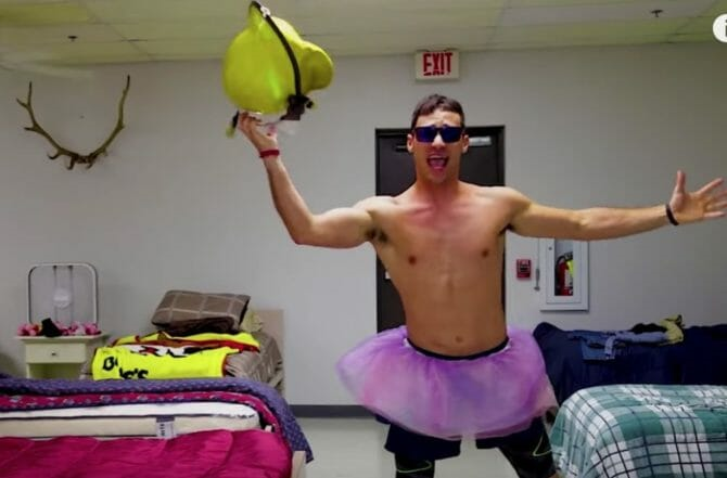 The firefighters from Paris, Texas re-enact a number of songs including 'Wrecking Ball' and 'Barbie Girl'