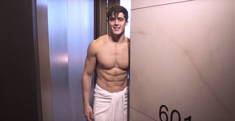 The model gets sweaty in his latest workout video