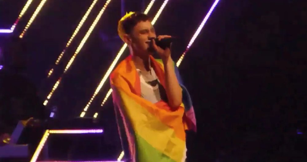Danish fans appeared to have their rainbow flag taken from them by stewards in Baku, Azarbaijan.