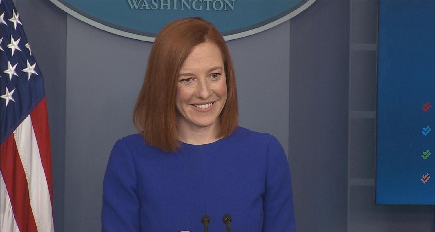 Psaki was fielding a rambling question about "trans girls and cis girls" competing in school sports