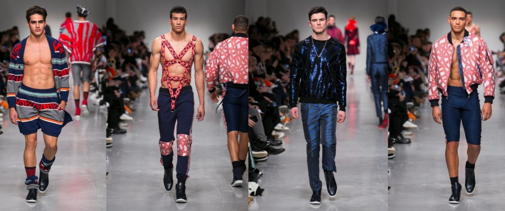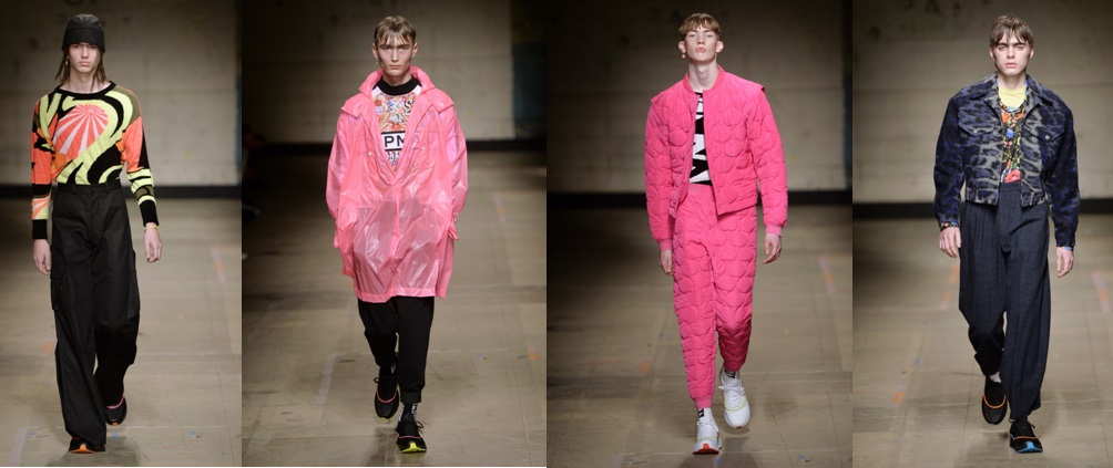 Topman Design took inspiration from the pubbing and clubbing of the ’90s, with plenty of sportswear, sherbet neons, macs, and and psychedelic prints present.