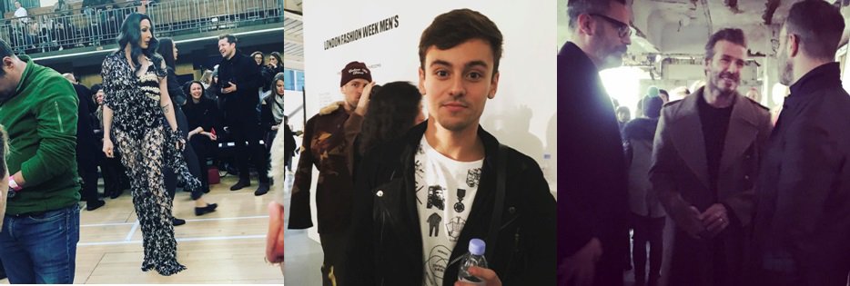 Away from the runway, there were plenty of celebs to spot whilst out and about on a cold week in January: Drag Race star Detox was serving fish at the Vivienne Westwood show, former cover star Tom Daley stopped by for a quick chat with us outside Matthew Miller, and our Lord David Beckham showed his commitment to newly-acquired Kent and Curwen with an appearance alongside wife Victoria and son Brooklyn.