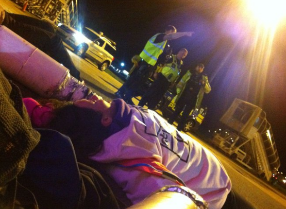 That’s why on Tuesday night activists from Lesbians and Gays Support the Migrants joined End Deportations and others to blockade a non-commercial runway at Stansted airport to stop a mass deportation charter flight to Nigeria and Ghana. It’s why I put myself on the line, my body on tarmac, to make a stand.
